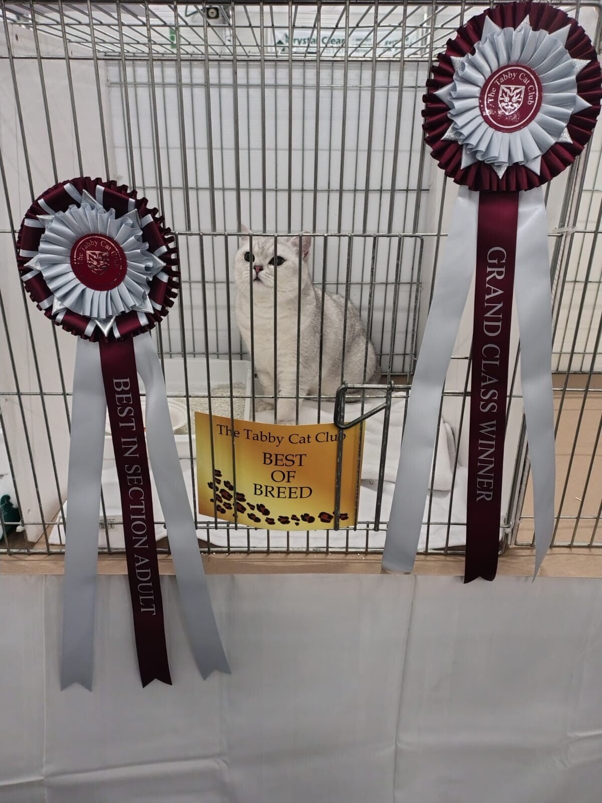 November 2025 Awarded his 1st Grand Champion Certicificate and Best in Section Adult at the Tabby Cat Club Show.